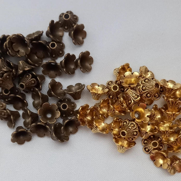 خرجکارهای بین مهره در دو رنگ برنزی و طلایی مخصوص ساخت بدلیجات سنتی و برنزی