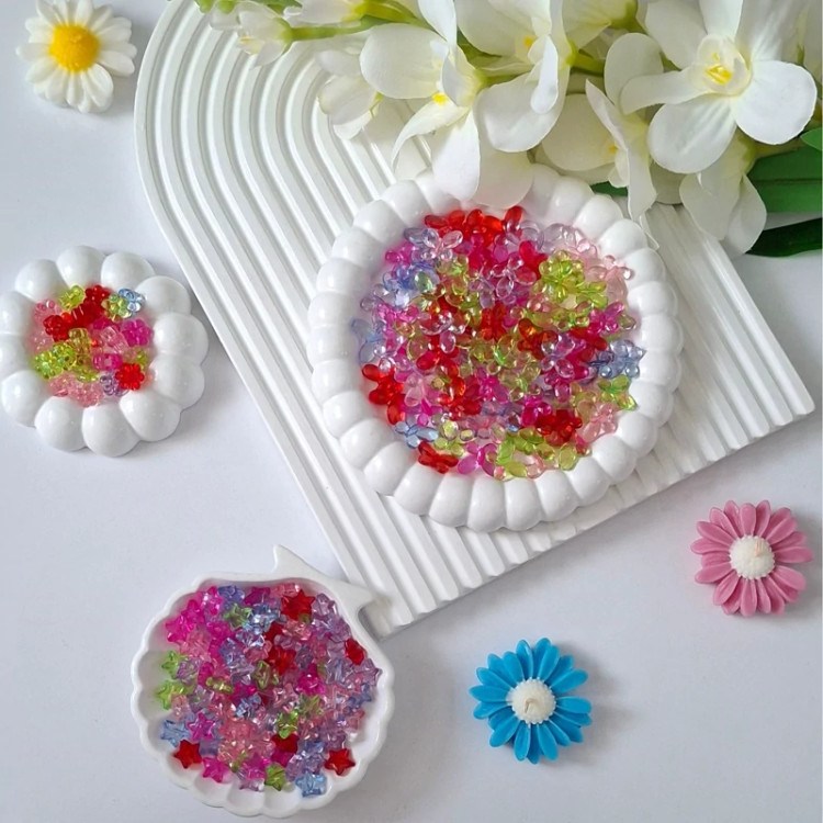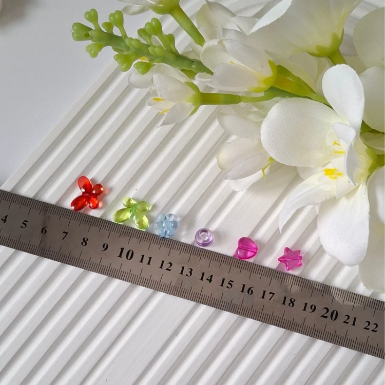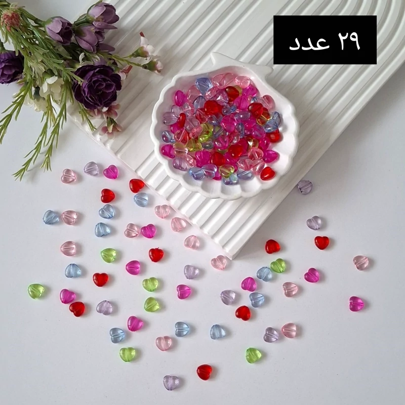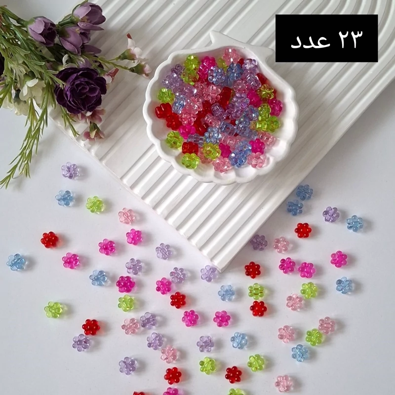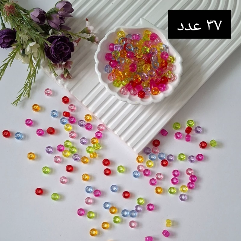 بین مهره های شیشه ای در 5 طرح تعداد مهره ها در هر بسته روی عکس نوشته شده اندازه مهره ها روی خط کش مشخصه