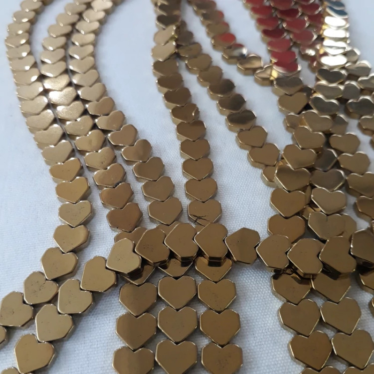 سنگ حدید قلبی سایز 8 رنگ ثابت طلایی فروش بصورت ریسه ای به تعداد 60 عدد مناسب برای ساخت دستبند و گرنبند