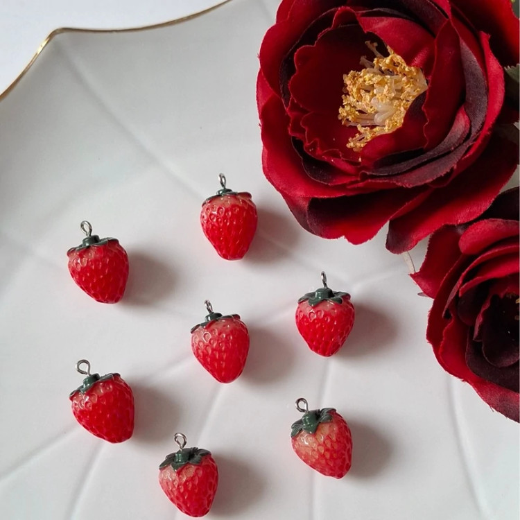 آویز توت فرنگی سه بعدی رنگ ثابت اندازه شون 2.5 سانت مخصوص آویز کیف، آویز گوشی،گوشواره...