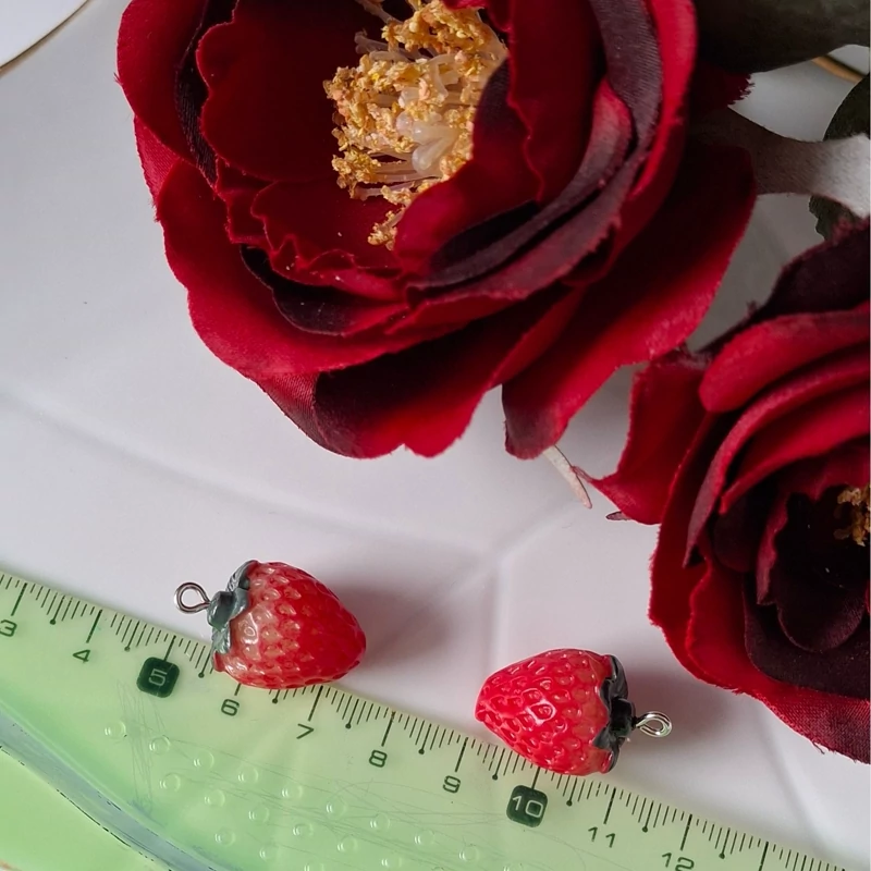 آویز توت فرنگی سه بعدی رنگ ثابت اندازه شون 2.5 سانت مخصوص آویز کیف، آویز گوشی،گوشواره...