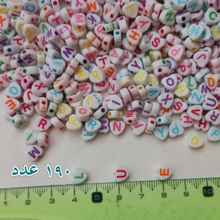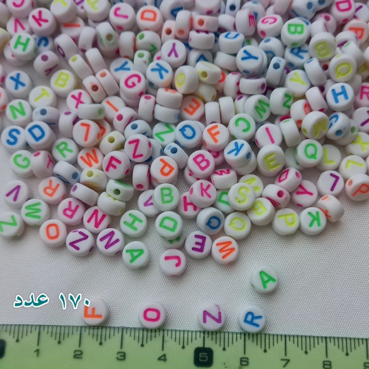 مهره های پلاستیکی حروف و اعداد در بسته های 25 گرمی