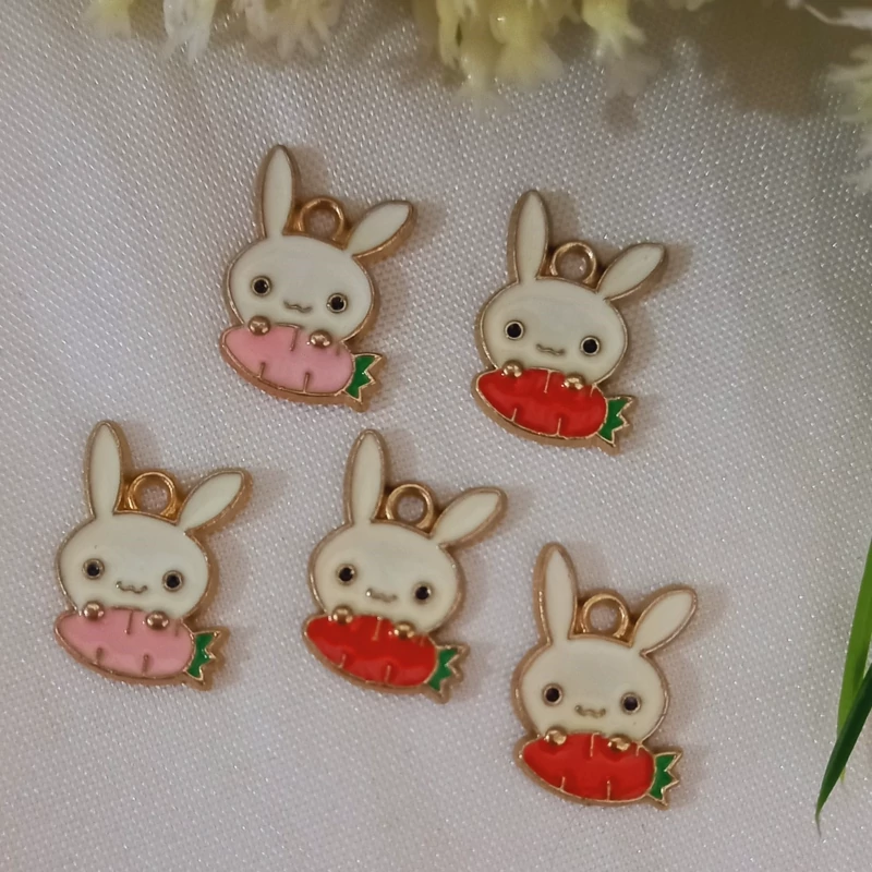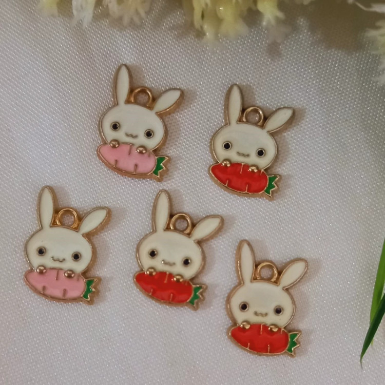 پلاک فانتزی طرح خرگوش هویج به دست اندازه پلاک 1.5 سانت پشت پلاک طلایی رنگ معمولی میباشد