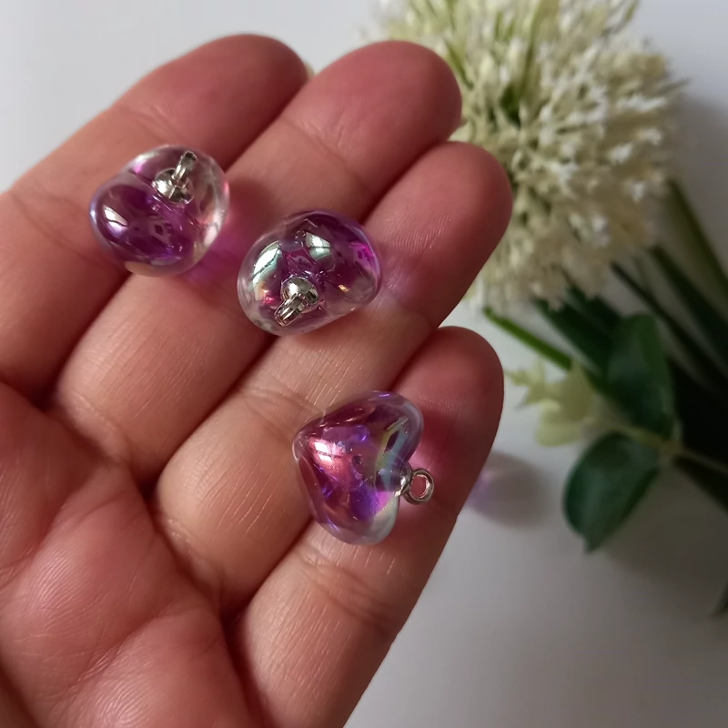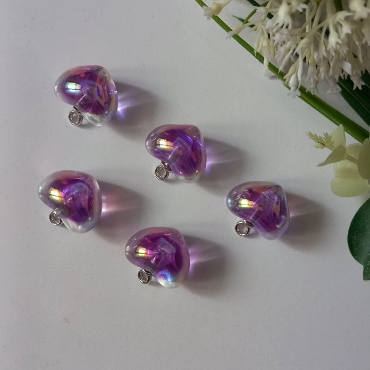 آویز قلبی هولوگرامی رنگ بنفش فروش بصورت دونه ای اندازه شون 2 سانته