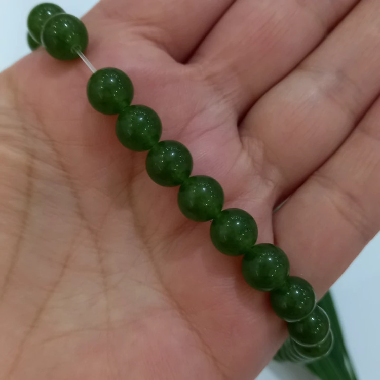 سنگ گرد عقیق سبز سایز 8 تعداد مهره ها در هر ریسه 46 عدد با کیفیت عالی