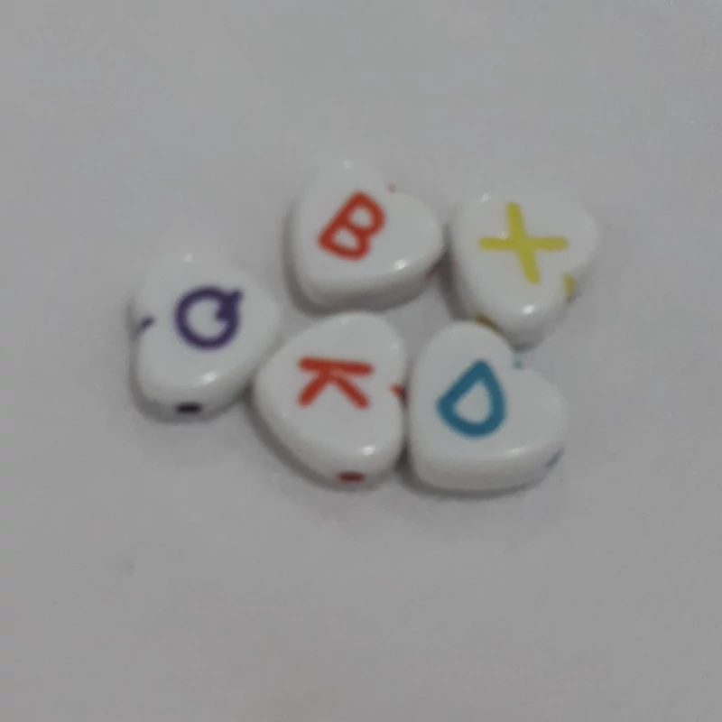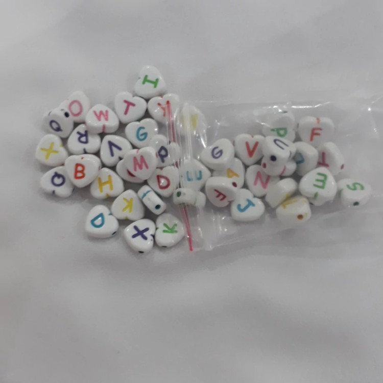 مهره پلاستیکی حروف انگلیسی با طرح قلبی در رنگهای مختلف در بسته با تمامی حروف انگلیسی