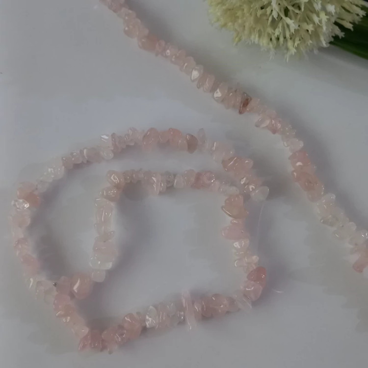 سنگ شکسته رز کوارتز فروش بصورت ریسه 39سانتی