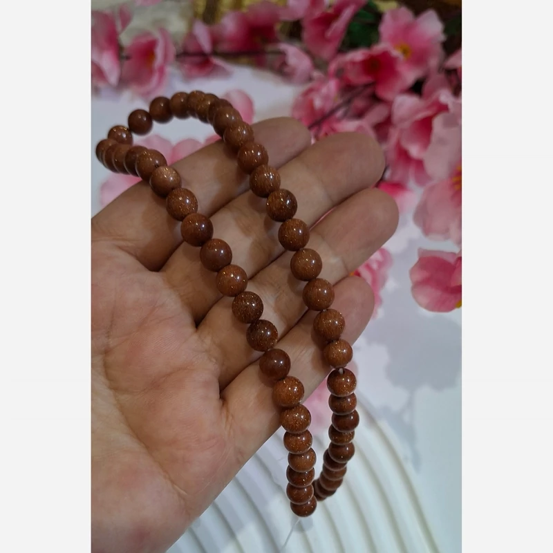 سنگ گرد دلربا قهوه ای سایز 8 (فروش بصورت ریسه ای)