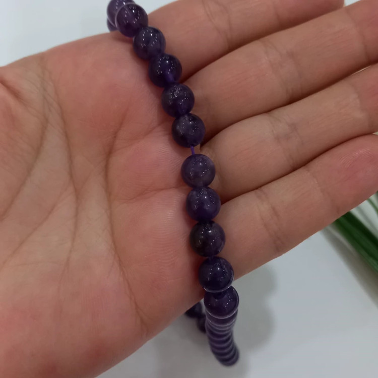 سنگ گرد آمیتیست سایز 8(فروش بصورت ریسه ای)