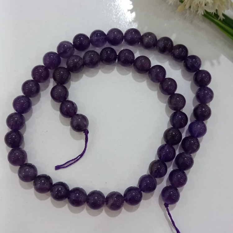 سنگ گرد آمیتیست سایز 8 فروش بصورت ریسه ای تعداد مهره ها در هر ریسه 47 عدد