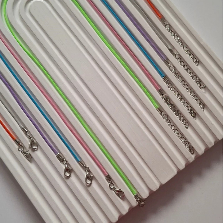 بند چرمی گردنبندی رنگی طول بندها 45 سانته و انتهای بند 5 سانت زنجیر سایز برای تنظیم سایز گردنبند اضافه شده و جمعا طول بند همراه قفل و زنجیر 50 سانت میباشد و اتصالات بکار رفته در بندها رنگ معمولی هستن.