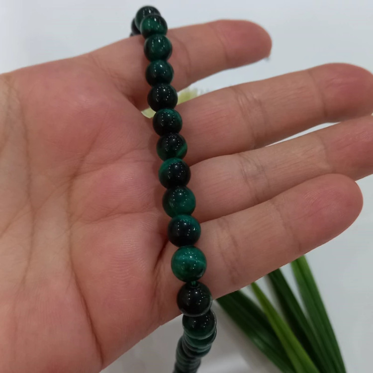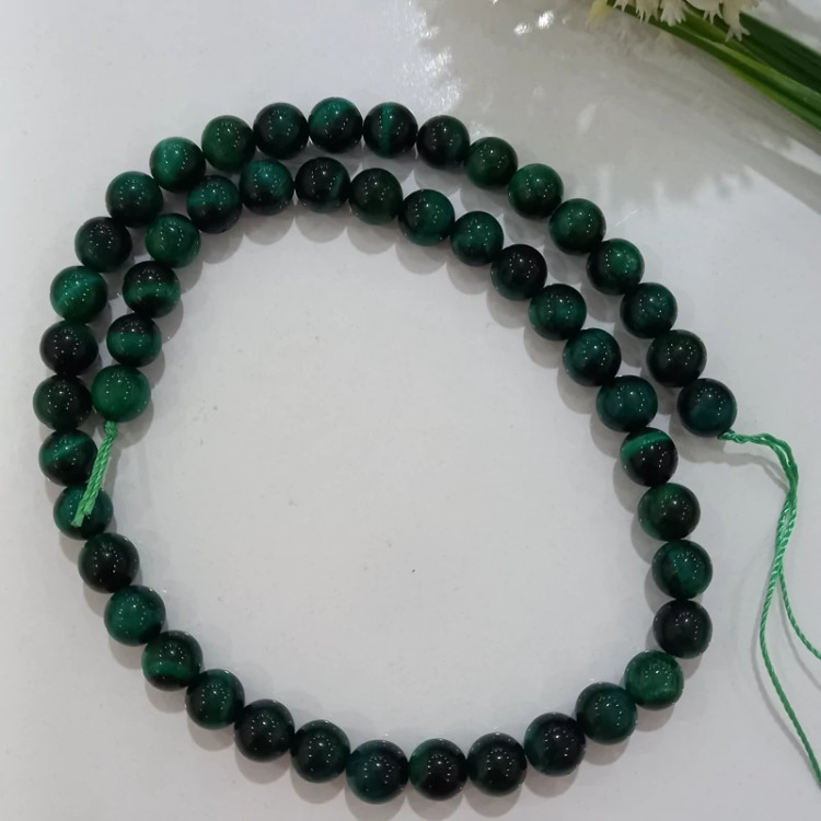 سنگ گرد چشم ببر سبز سایز 8(فروش بصورت ریسه ای)