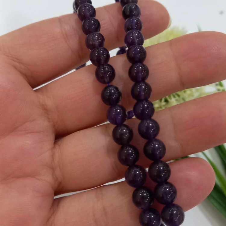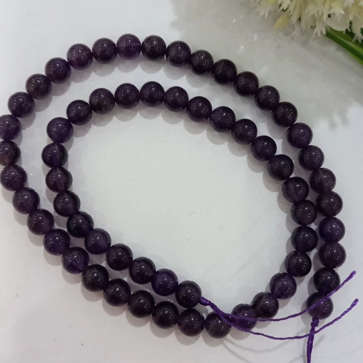 سنگ گرد آمیتیست سایز 6 فروش بصورت ریسه ای تعداد مهره ها در هر ریسه 60 عدد
