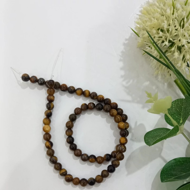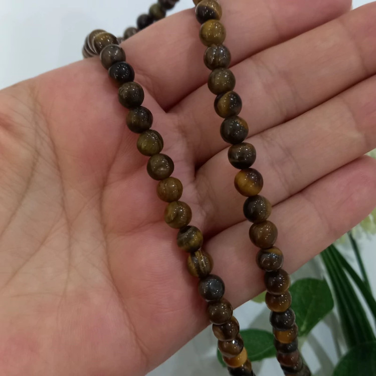 سنگ چشم ببر گرد سایز 6 فروش بصورت ریسه ای تعداد مهره ها در هر ریسه 62 مهره