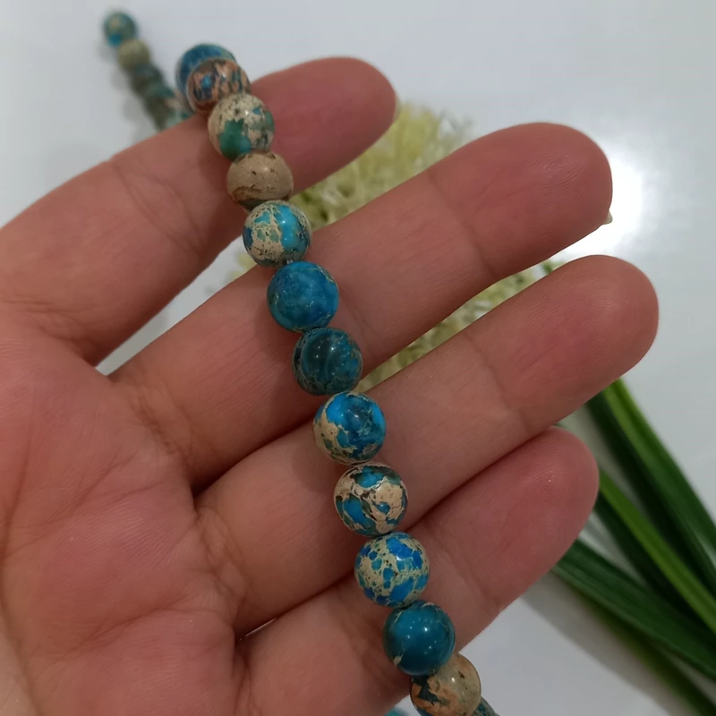 سنگ گرد فیروزه سایز 8 (فروش بصورت ریسه ای)