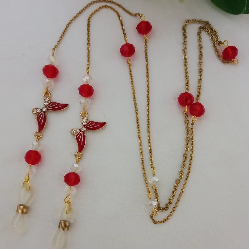 بند عینک طرح پروانه و کریستال با زنجیر رنگ ثابت اندازه زنجیر ۸۰ سانت میباشد پروانه ها در ۱۴ رنگ متنوع هستند که میتونید رنگ پروانه و کریستال ها رو با رنگ دلخواهتون ست کنید و سفارش بدید.