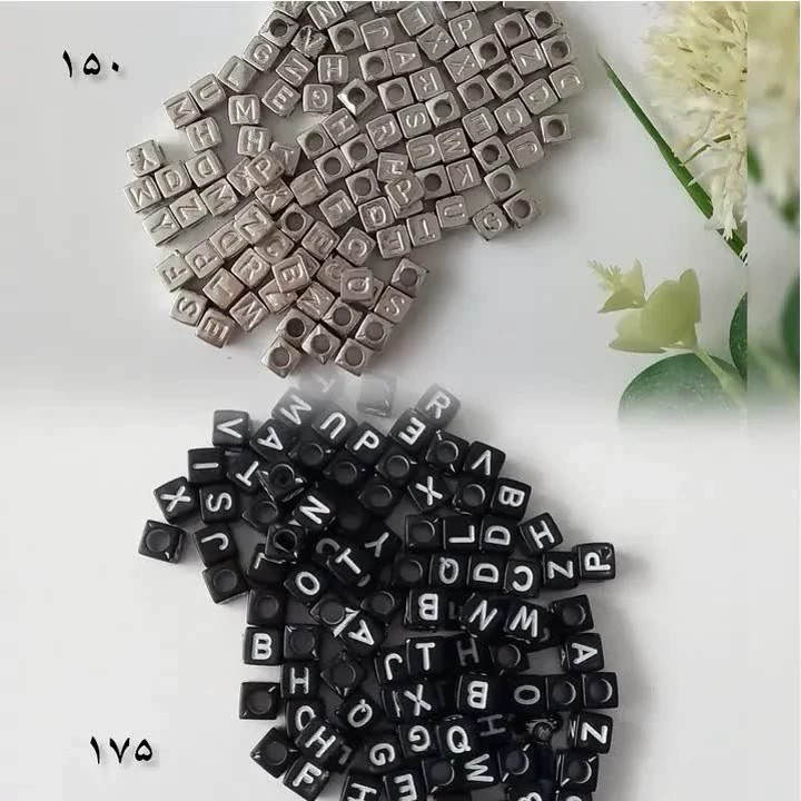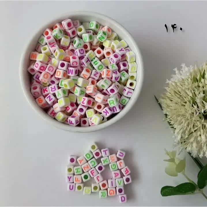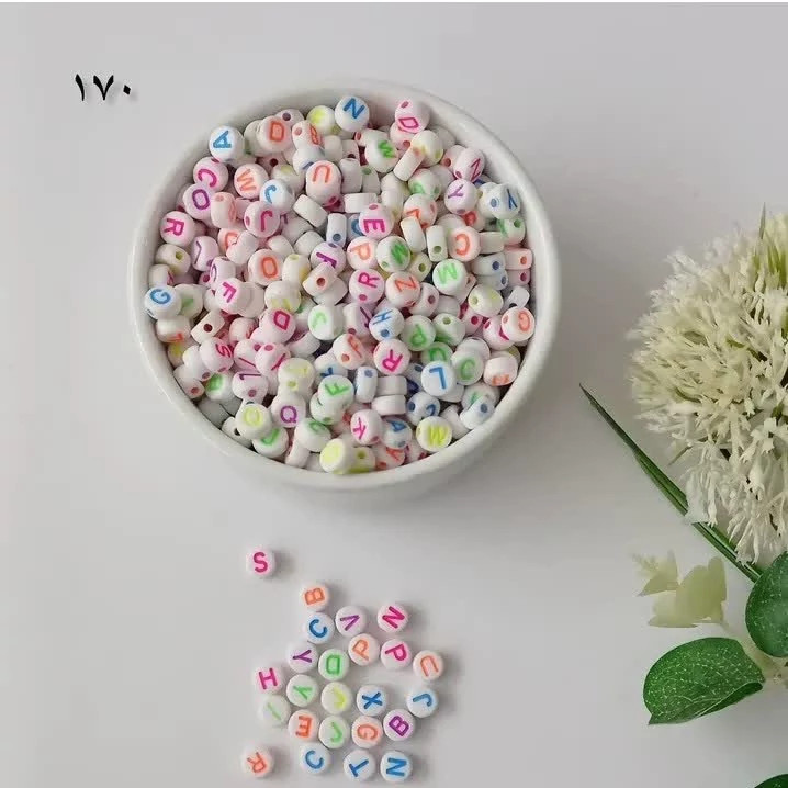 مهره حروف لاتین فروش بصورت بسته های 25گرمی تعداد مهره ها در هر بسته روی عکس ها نوشته شده