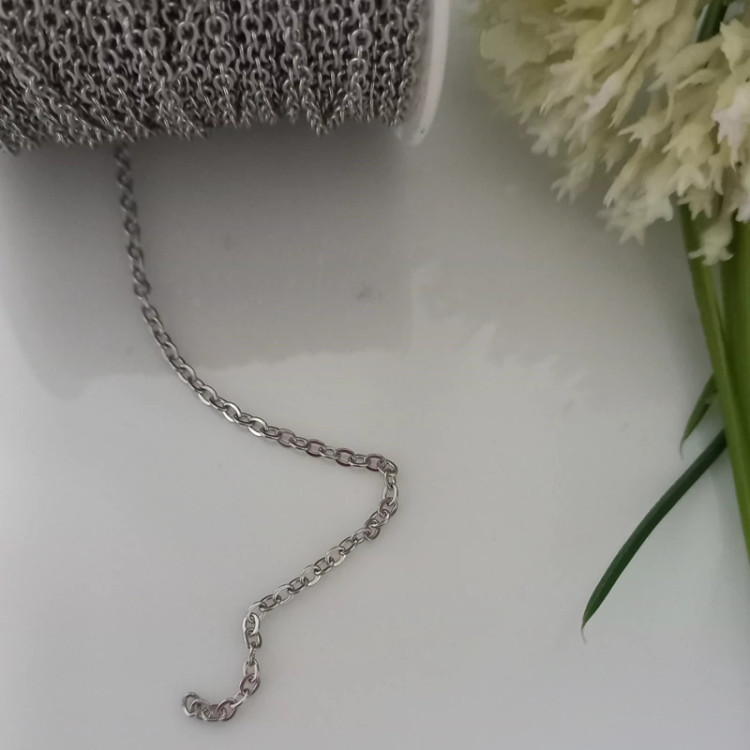 زنجیر دیپلمات نقره ای استیل رنگ ثابت سایز ۰.۴ فروش بصورت متری