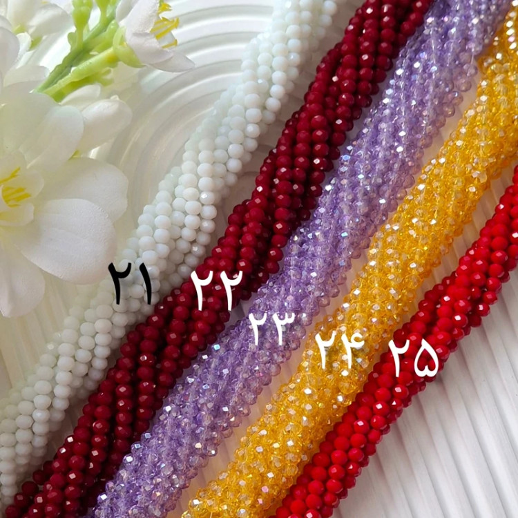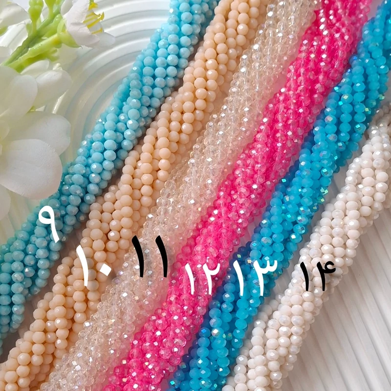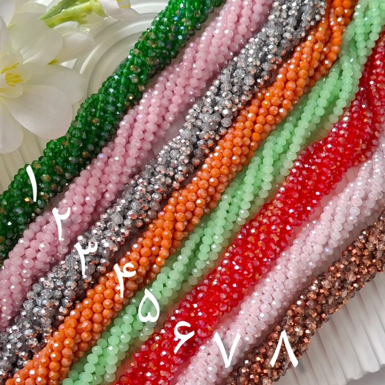 کریستال سنگی سایز 6 فروش بصورت ریسه ای تعداد مهره ها در هر ریسه 84 عدد