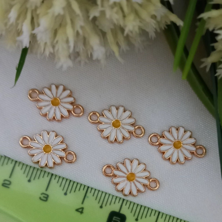 پلاک دستبندی بابونه رنگ سفید پشت پلاک طلایی میباشد اندازه پلاک ۱.۵ سانت میباشد مخصوص ساخت دستبند، آویز روسری.....