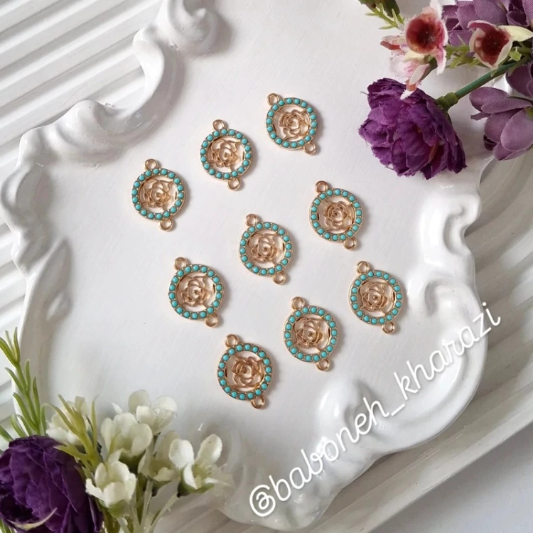 پلاک دستبندی ضربان قلب با نگینهای رنگ فیروزه ای اندازه پلاک ها ۲ سانت پشت پلاک طلایی رنگ معمولی میباشد